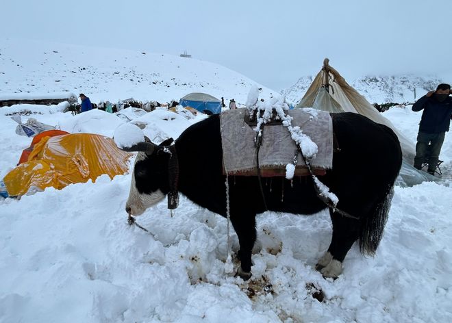 晓乌措营地,帐篷外积雪已深 董书畅供图