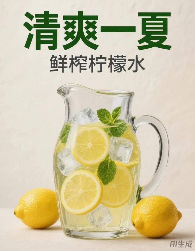 接下来,我们再进行一组海报测试。这次的提示语是:「柠檬水海报」。