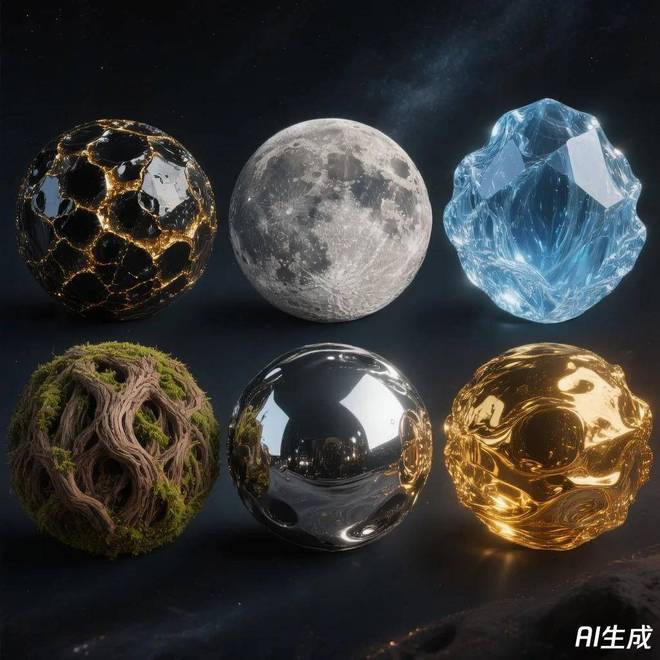 提示语:生成六种材质的满月,其中第二个是真实的满月。