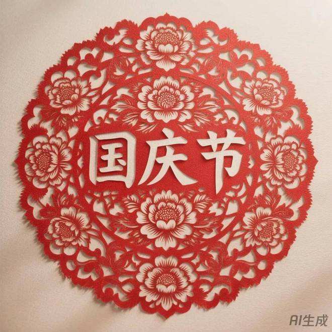 接下来我们决定进一步考验混元图像 3.0 对传统艺术的表现力,这次的提示语是「中国传统剪纸艺术风格,展现细腻精致的民俗非遗纸艺之美。红色剪纸元素镌刻出‘国庆节’字样,构图典雅大方,富有传统韵味。画质高清,突出剪纸细节与层次感,营造节日氛围。」