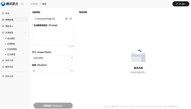 https://hunyuan.tencent.com/modelSquare/home/play?from=modelSquare&modelId=289