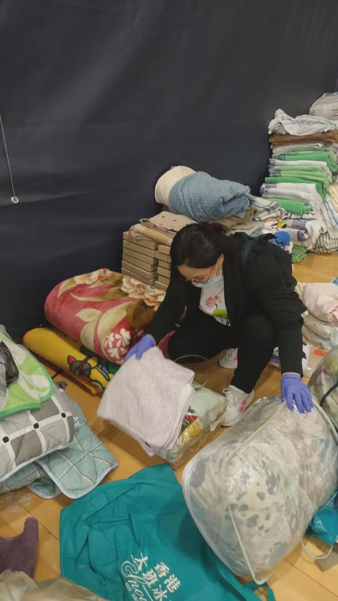 多位受访者向中国新闻周刊提供的视频显示,现场人群出入忙碌,救援物资种类丰富,除食物外,也有衣物鞋袜、枕头寝具和卫生消毒用品等。有人开车运送,有人推小推车递送。