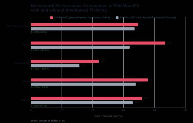 作为最早官方支持该技术的开源模型,MiniMax M2 在提升 Interleaved Thinking 的性能与效率上已经形成了自己独到的一套打法。