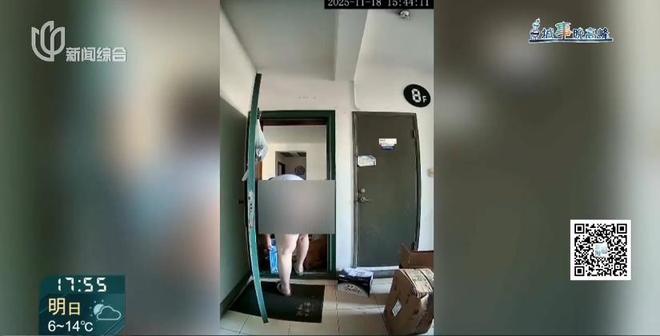 小区居民朱女士,11月拍摄到的视频显示,当天,这名体型较胖的租客正蹲在楼道里查看快递。该男子虽穿着裤子,但臀部几乎是裸露状态。