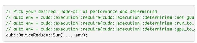 作为 CUDA 13.1 的一部分, NVIDIA CCCL 3.1 提供了两个额外的浮点确定性选项,您可以根据这些选项在确定性和性能之间进行权衡。
