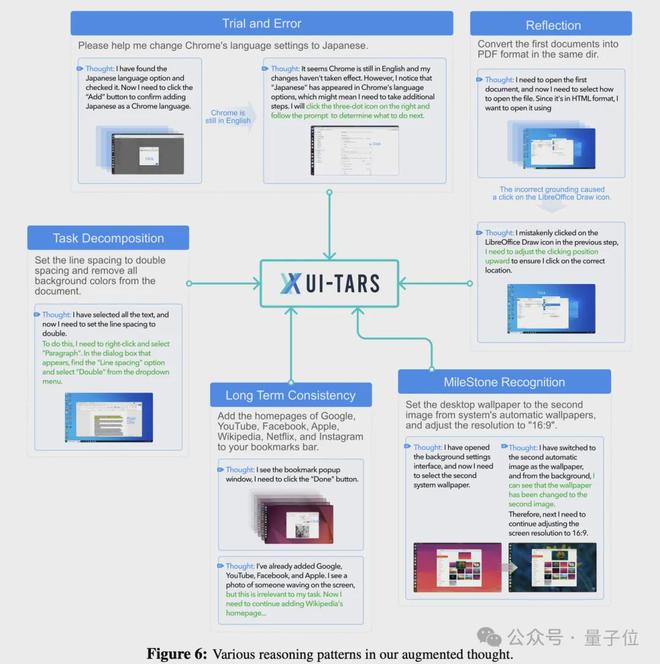 3)融入600万高质量GUI教程和多种推理模式(任务分解、反思等),注入System-2深思型推理能力。