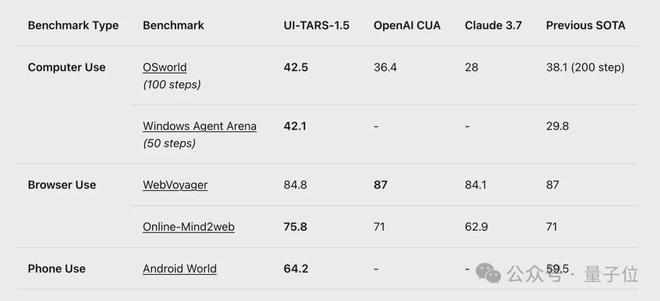 在多项标准基准测试中,UI-TARS-1.5相比前代模型实现了显著进步。