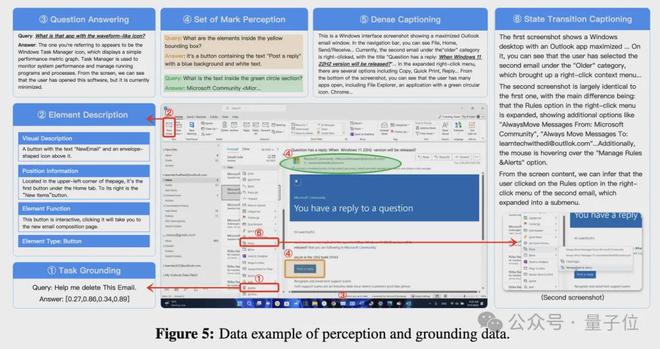 1)通过大规模GUI截图数据集和五大感知任务(元素描述、标记区域感知等)增强GUI感知精度。