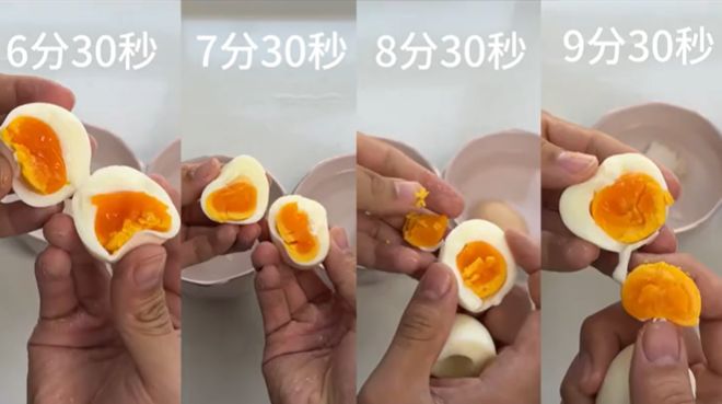 有人成功复刻金沙蛋,有人却翻车现场,更甚者问起了溏心蛋的做法。身为互联网煮蛋“老师”,那肯定要传授经验啊。所以他连夜拍了一条对比视频,把多个时间段的煮蛋效果挨个展示。还真别说,小雷也是第一次见识蛋黄还能有那么多形态的演变。