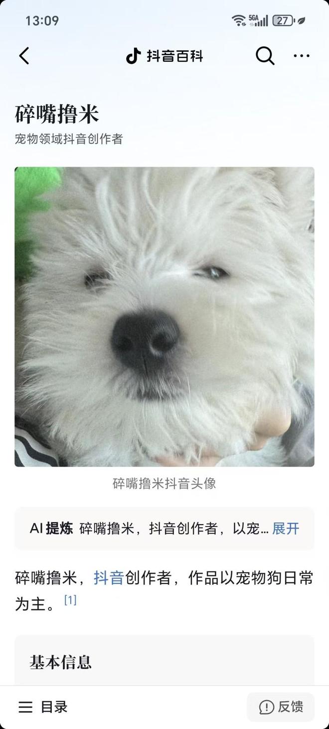 上游新闻注意到,抖音百科信息显示,碎嘴撸米,宠物领域抖音创作者,作品以宠物狗日常为主。2024年12月19日,其发布首个作品《姨姨们救救我!!!》,获赞2.1万;之后时常发布以宠物狗日常为主的作品。2025年3月6日,发布视频《大家好,这是我麻麻画的我》,获赞46.3万,这是其获赞最多的作品。目前,该账号在该平台已无法查找,上述热门视频也无法打开观看。