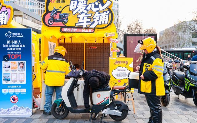 12月11日,美团党委2025防寒骑手关怀——暖冬服务站全国巡展活动在北京朝阳三里屯正式启动。以“补给 服务 休闲 情感”四维创新关爱场景,精准破解骑手冬季“防寒保暖难、临时歇脚难、餐饮补给难”痛点,后续还将在西安、重庆等多座城市持续推进,为全行业户外劳动者送上冬日温暖。现场,美团联动雅迪、统一等合作品牌搭建暖心车铺、面铺、饮铺、礼品铺与衣铺,通过物资补给、趣味互动等多元举措,全方位传递冬日温情,为骑手提供休憩休整、餐饮补给、福利获取等服务。
