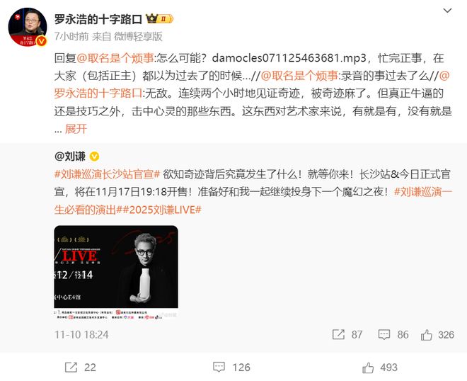 12月16日消息,日前有网友问罗永浩「录音的事过去了吗?」,罗永浩直接回了句「怎么可能」,还甩出个录音文件名——damocles071125463681。