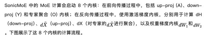 二是 Epilogue 融合,通过以下设计充分利用 epilogue 计算,以最大化减少不必要的 IO 访问:将 SwiGLU 以及 SwiGLU 的反向(dSwiGLU),分别与前向 up-proj 内核的 epilogue、反向 down-proj 激活梯度内核的 epilogue 进行融合;在反向 down-proj 激活梯度(dH)内核的 epilogue 中计算 dH 和 dS。