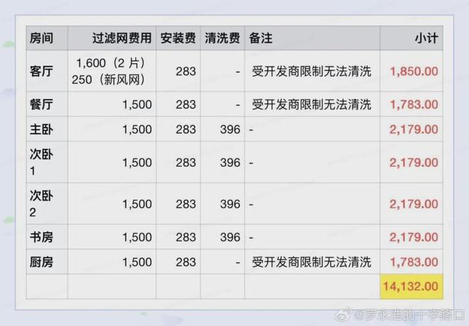 【罗永浩质疑大金中央空调“换滤网加清洗每年1.5万元”,客服回应:正在核实】12月19日,大V罗永浩在网上发文,公开质疑大金中央空调的售后维护价格及服务态度。罗永浩在文中写道,他租的房子,装的是大金中央空调,一共是7台空调内机。换季时想清洗一下,官方客服说换滤网和清洗的费用是每年15000元左右。“这个费用大家就算买得起,怎么可能用得起?他(客服)又翻了一个大白眼说,所以可以不清洗不换滤网啊。”他向网友提问,这种费用和服务在空调行业里是不是常态。