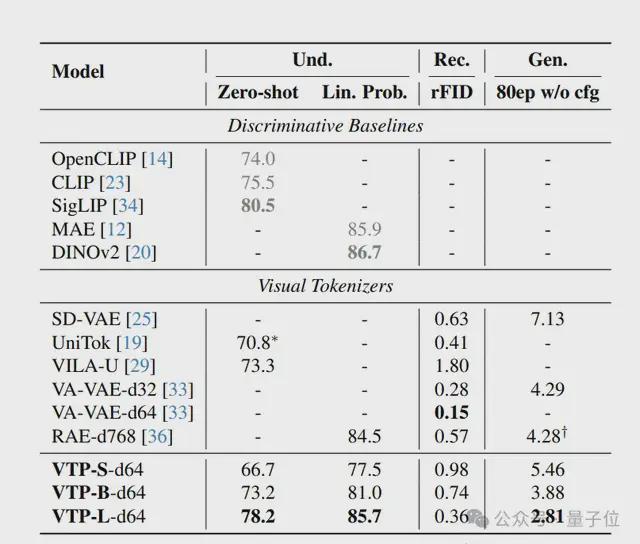 基于此,团队训练的VTP在理解、重建、生成方面均交出了不错的答卷——