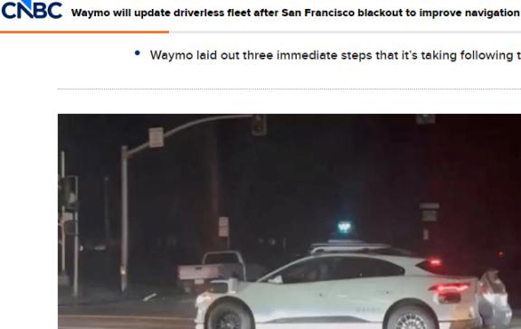 【环球网科技综合报道】12月25日,据CNBC报道,自动驾驶公司Waymo在旧金山大面积停电事件导致其无人驾驶服务暂停三天后,宣布将对车队进行全面升级,同时推出三项应急优化措施,以提升车辆应对基础设施故障的能力。