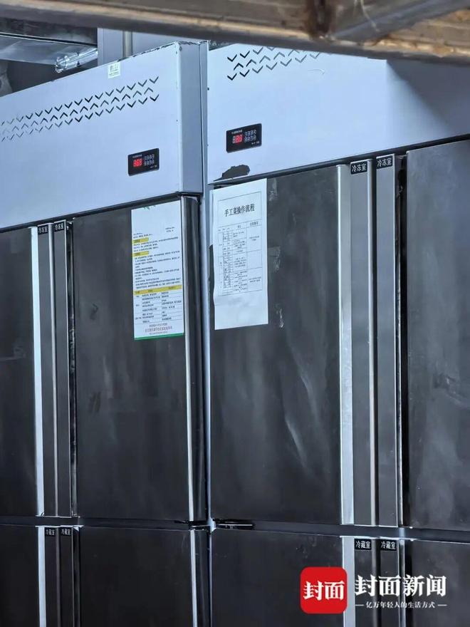 尽管店家们皆宣称仅进行“简单调味加工”,然而在一家名为“孔二火锅”的后厨,记者发现冰柜门上贴着嫩肉片制作的“秘方”——“拌粉1+拌粉2+水……”“拌粉1”“拌粉2”,这类模糊标注令人存疑。