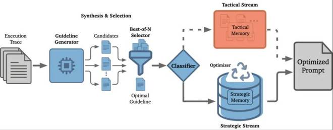 随着规则积累,战略记忆可能包含冗余或冲突的内容。SCOPE 的优化器(Optimizer)会执行三步清理:冲突解决(合并矛盾规则)、冗余剪枝(移除被更通用规则覆盖的具体规则)、整合归并(将相似规则合并为综合性规则)。