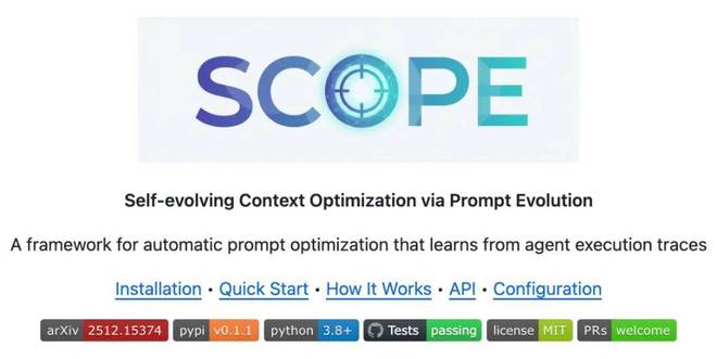 SCOPE 的代码已在 GitHub 开源。正如论文所总结的:“与其工程化静态 Prompt,不如让 Agent 在线进化自己的 Prompt。” 这一思路可能为下一代 Agent 系统的设计提供新的方向。