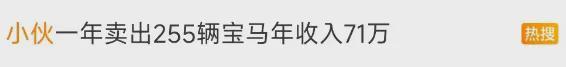 “小伙一年卖出255辆宝马”的相关话题登上热搜