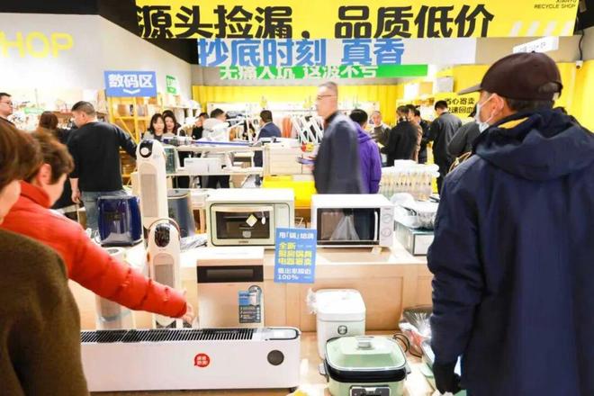 上午9点半,商场一开门,就有不少市民前来探店。亮黄的门头、琳琅满目的闲置好物吸引着人们“买买买买买”。