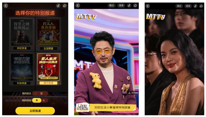 依然是短剧形式,给了四套剧本,从投资风云、横扫顶流,到打工穿越、硬核科技,选好剧本后,就能直接登入。