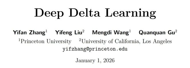 论文地址:https://github.com/yifanzhang-pro/deep-delta-learning/blob/master/Deep_Delta_Learning.pdf