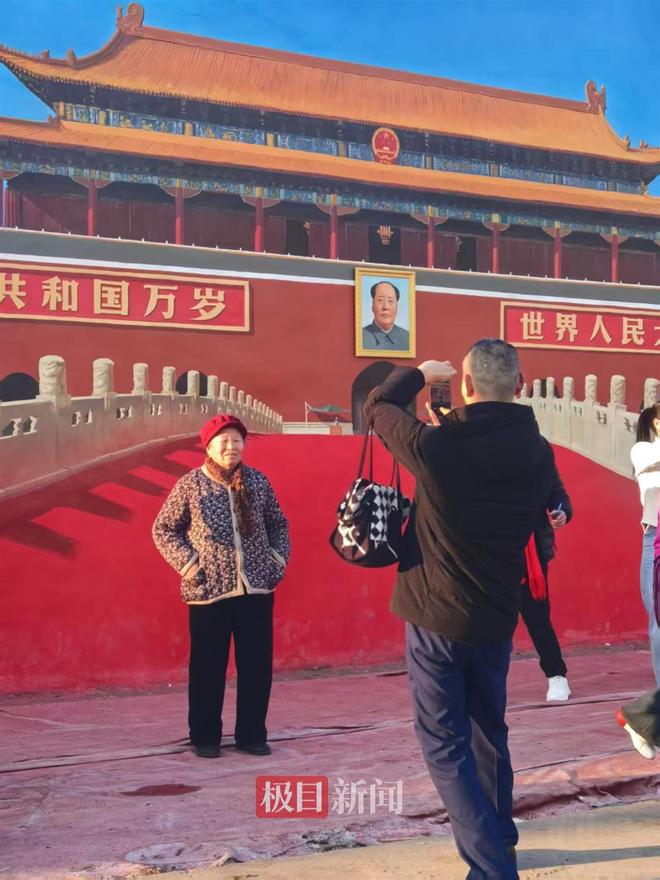 “五年前带着奶奶去过北京,这一次看家门口这个‘天安门’,她还想再来看看,拍个照。”侯先生在周边等了40来分钟,人流稍微少点了,让奶奶成功跟天安门合影。