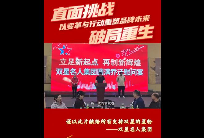 而企业公众号文章中表示:在搬迁后的全体职工大会上,汪军总经理代表新一届领导班子,对品牌的未来进行了重新规划,决心以变革与行动重塑品牌未来,也提到“双星的企业领导班子正在经历迭代”。