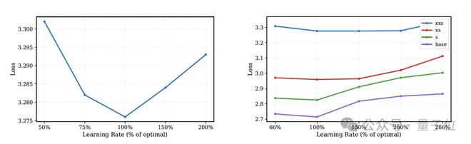 由此,研究成功地稳定了这种不等宽架构的训练,并实现了零样本超参数迁移,即小型代理模型上找到的最佳学习率可以直接用于训练更大的DLCM模型。