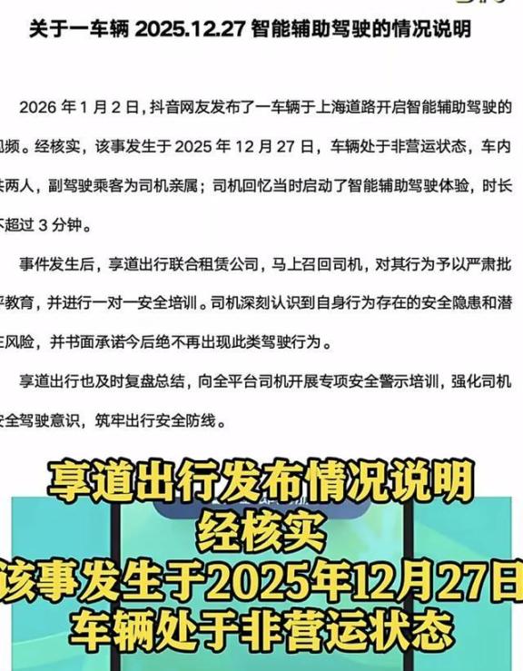原标题:《离谱!上海高架上,网约车司机开着智驾睡大觉,享道出行回应→》