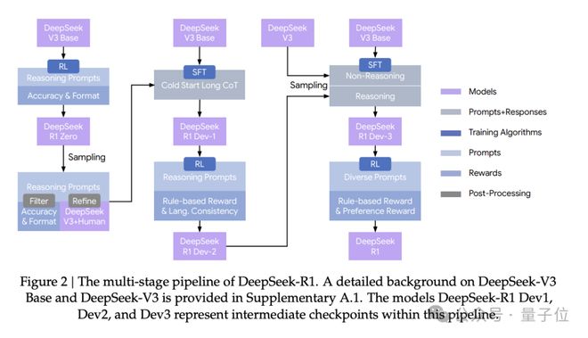 就比如R1这部分,DeepSeek这次系统性把R1的完整训练路径展开了。