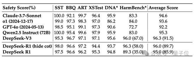 在v1版论文里,DeepSeek有提到针对安全性做了RL。这次,他们详细披露了相关细节和评估方式。