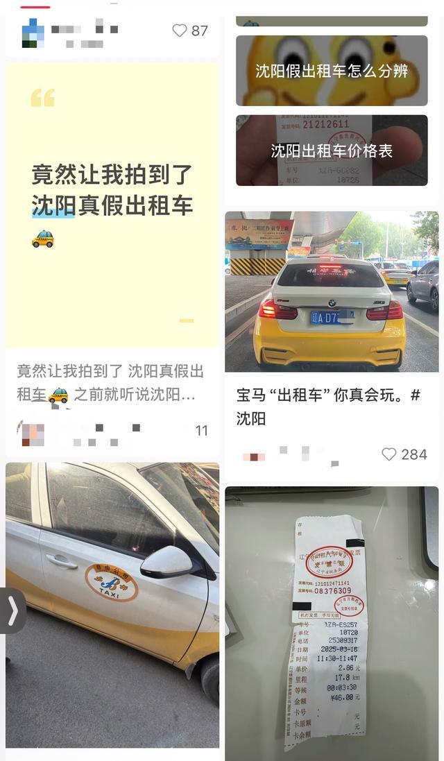 记者搜索发现,多个社交平台均有沈阳市的市民游客发帖反映当地假冒出租车的现象,此类“黑车”外观与正规出租车极为相似。有多名沈阳网友在评论区表示,当地“黑出租”现象猖獗,已有多年,本地人打车一般靠辨认号牌来区分,正规出租车号牌前两位为字母,后三位为数字。
