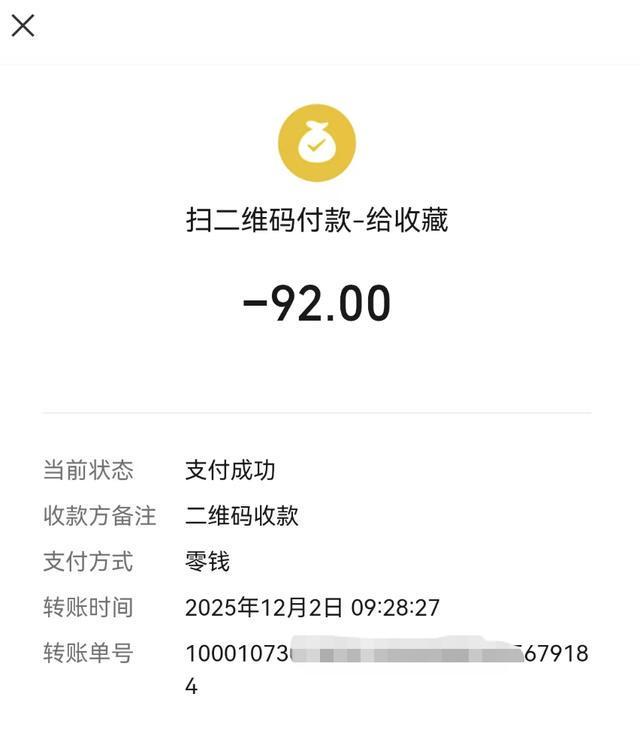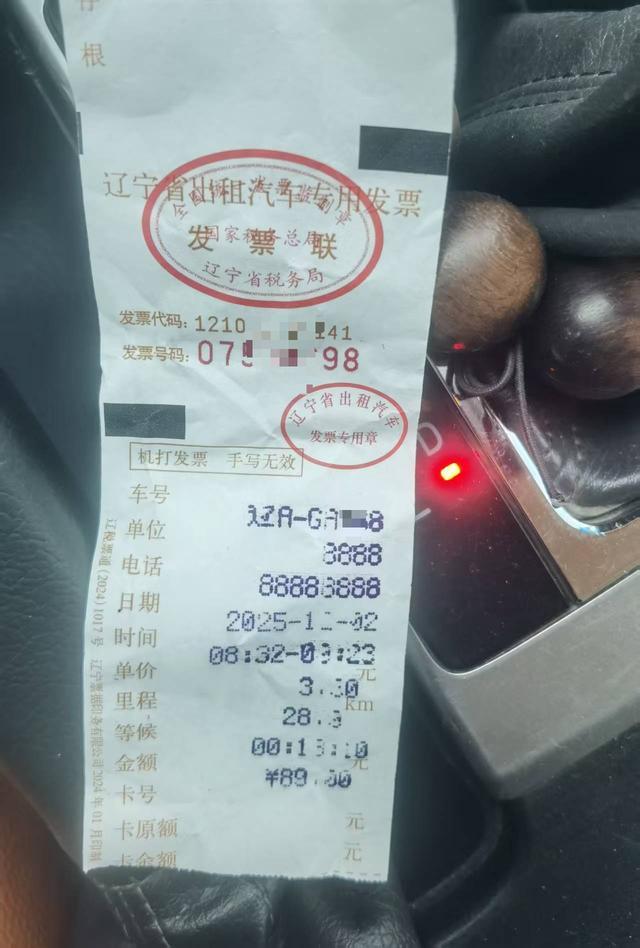 高先生的微信付款记录显示,12月2日上午9时28分,他扫码向对方付款92元。司机向他提供的机打发票显示,发票抬头“辽宁省出租汽车专用发票联”,印着“辽宁省出租汽车发票专用章”,发票号码为075****8,出租车牌号为辽A GA**8,单位和电话均无显示,发票金额为89元。