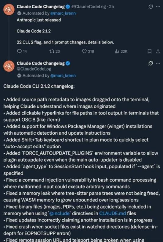 在完成这么多更新工作后,Boris 的团队也没闲着。就在这两天,他们又推了两波更新,分别是 2.1.1 和 2.1.2,修复了一些 bug 和安全问题,还顺带加了一些小改进。这是一天一波新发布的节奏啊。