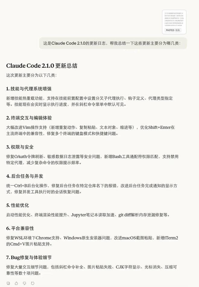 根据 Claude 的总结,这次更新大概包含以下类型: