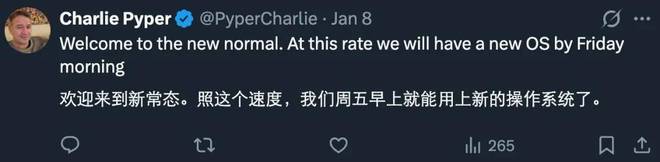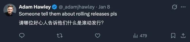 还有人调侃说「求求了,谁去跟他们说一下什么叫 rolling release(滚动更新)吧」「照这个速度,我们周五早上就能用上新操作系统了」。