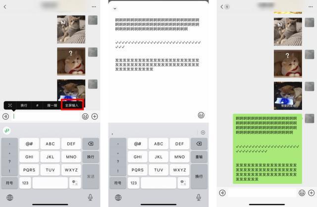 长按聊天框,在弹出的选项中滑到最右侧,就能选择“全屏输入”,打开思路。