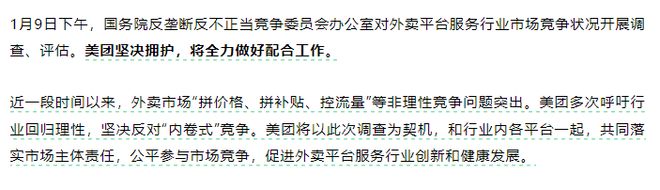 美团坚决拥护,将全力做好配合工作。全文如下: