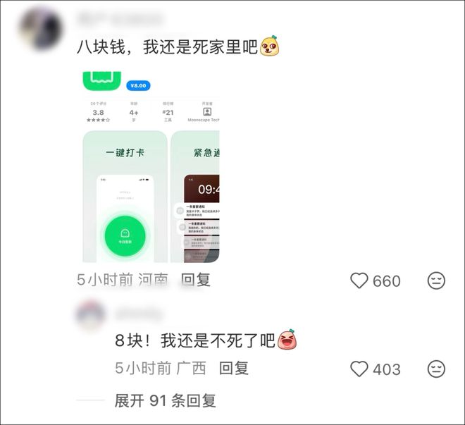 于是有网友打趣:8块钱,我还是死家里吧……不过立马有人跟帖:8块!我还是不死了吧!