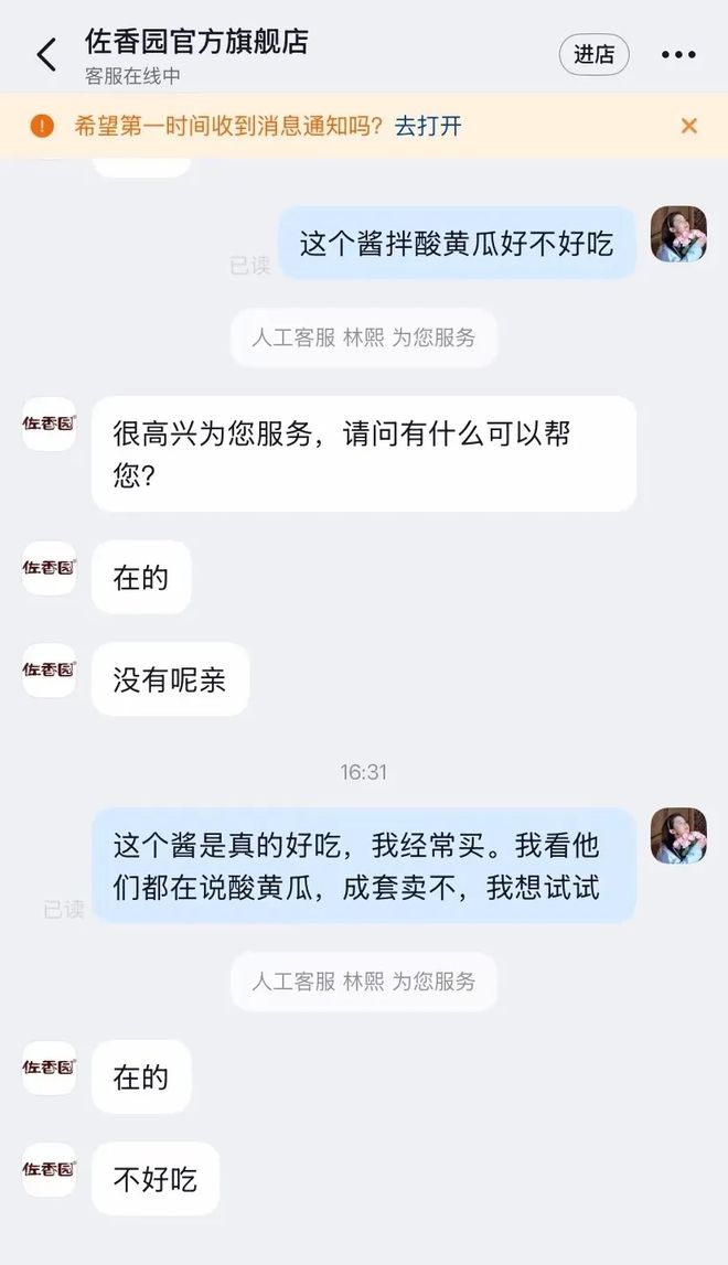 网友们第一时间涌入网上店铺,追着客服发问:“这个酱能拌酸黄瓜吗?”