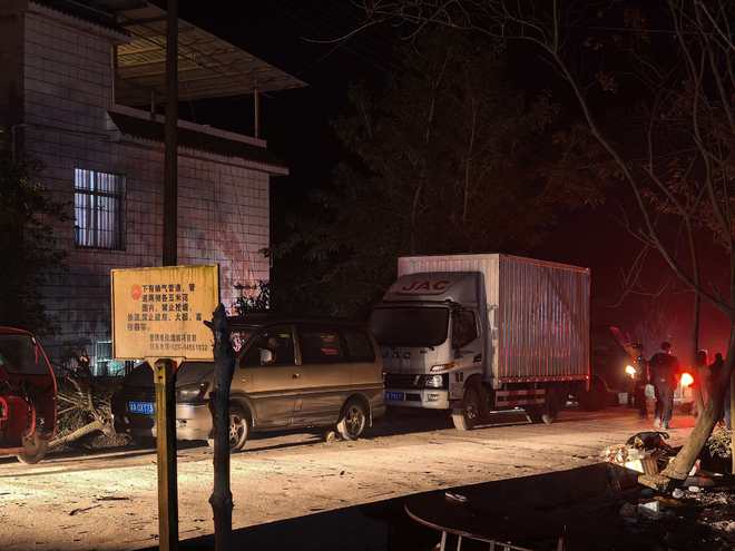 记者也看到了停在现场的三大通信运营商的应急通信保障车辆,冬夜里,有交警在村里的各个路口指挥交通,有派出所民警在现场维持秩序,以及穿着红马甲的志愿者在忙前忙后。一直到晚上23时左右,还有后勤人员在忙碌,他们将摆流水席用的桌椅装车,运走。