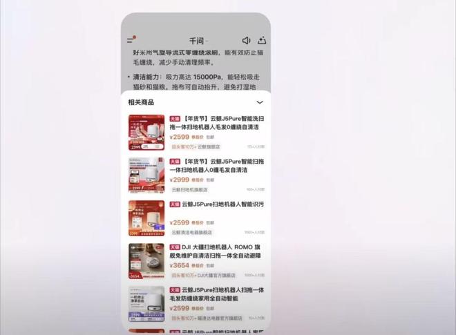 其中千问App接入淘宝,测试“AI购物”功能。用户可以直接与千问对话获得推荐产品,用户直接可以点击链接购物。
