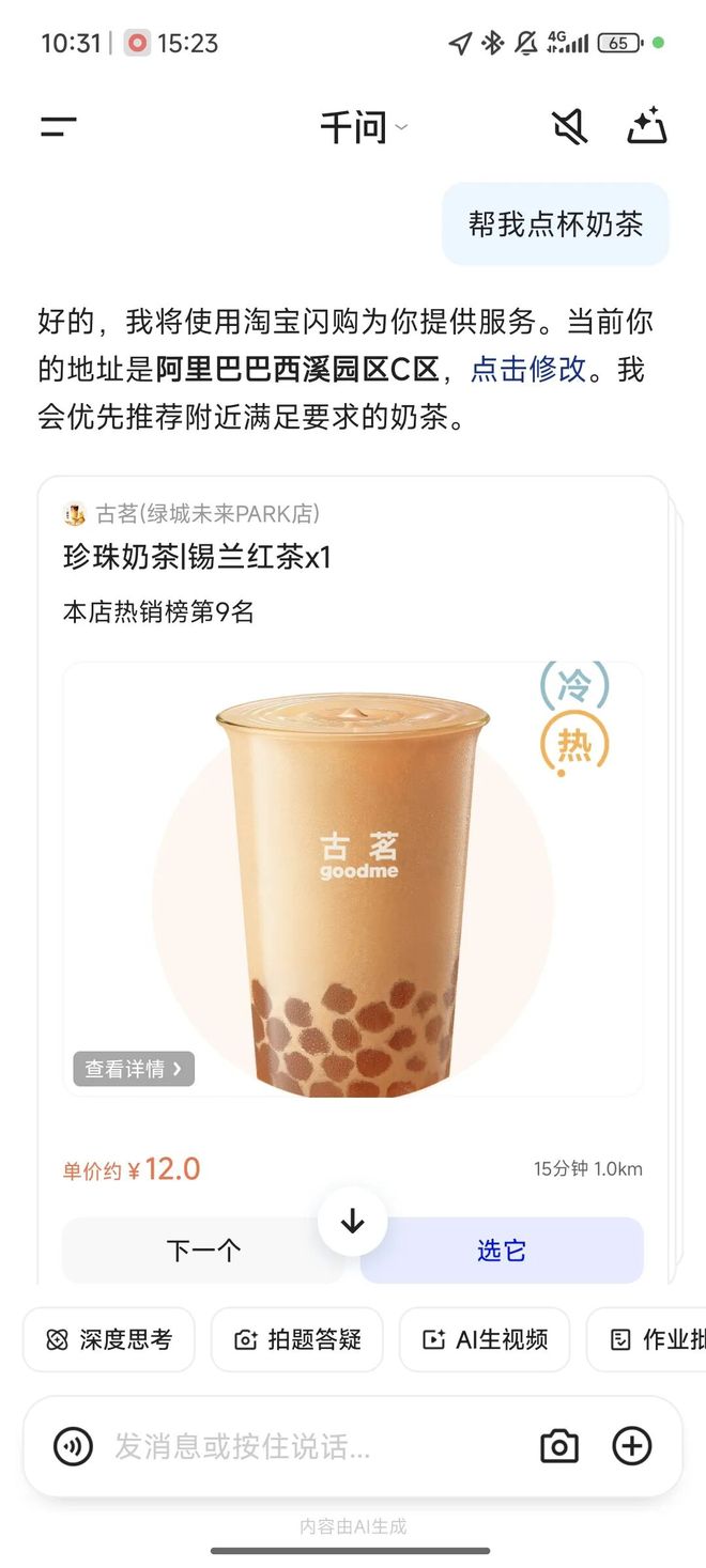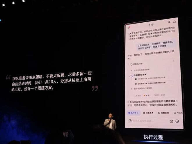 现在你打开千问App,能直接用它点外卖、订机票、淘宝买东西。比如你说“来40杯奶茶”,它自己就能在淘宝上找店、下单、付钱,不用你再跳来跳去打开别的App。它还能帮你整理乱七八糟的表格,或者给饭店打电话订位子,连通话内容都给你记下来。