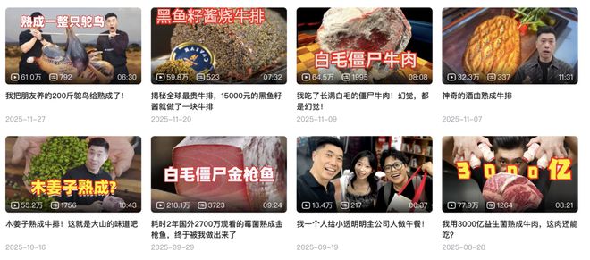 兴趣驱动让创作者摆脱了流量焦虑,敢于深耕垂直领域。如本届百大UP主@燕子堡BBQ学徒Ray,他所专攻的“花式熟成牛排”,是个相当小众的赛道,每次熟成的结果也常不尽如人意,一度,失败才是粉丝最乐于见到的画面。