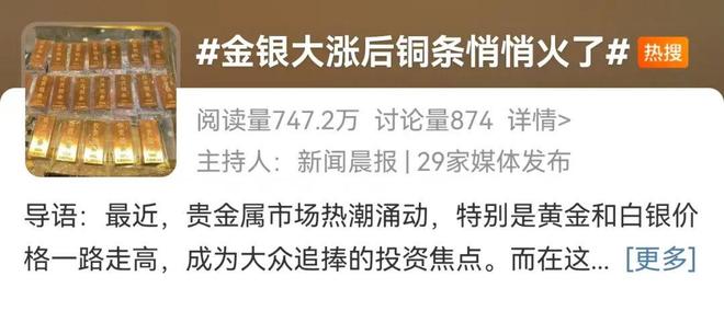1月19日,。最近,贵金属市场热潮涌动,特别是黄金和白银价格一路走高,成为大众追捧的投资焦点。而在这股热潮之下,又一种金属悄悄“出圈”——投资铜条。