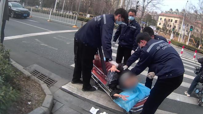 母亲被抬上救护车 网络截图