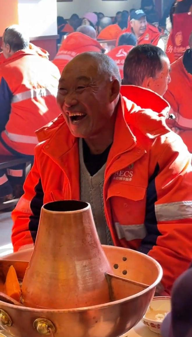 呼和浩特一火锅店老板请两千名环卫工免费吃饭(来源:受访者)
