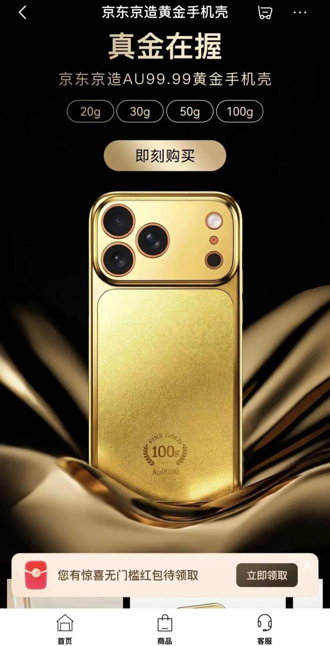 近日,京东平台正式推出黄金手机壳,最低11299元起,最高达112299元。